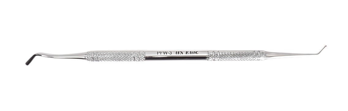 The W3 Composite Plastic Filling Instrument is designed for placing and shaping composite fillings in restorative dental procedures. It is particularly useful in filling cavities and reshaping the tooth after the cavity has been prepared and cleaned.